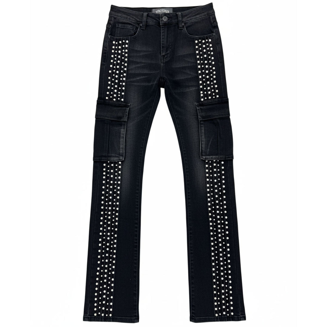 Embellished Side Pearl Denim (Black)