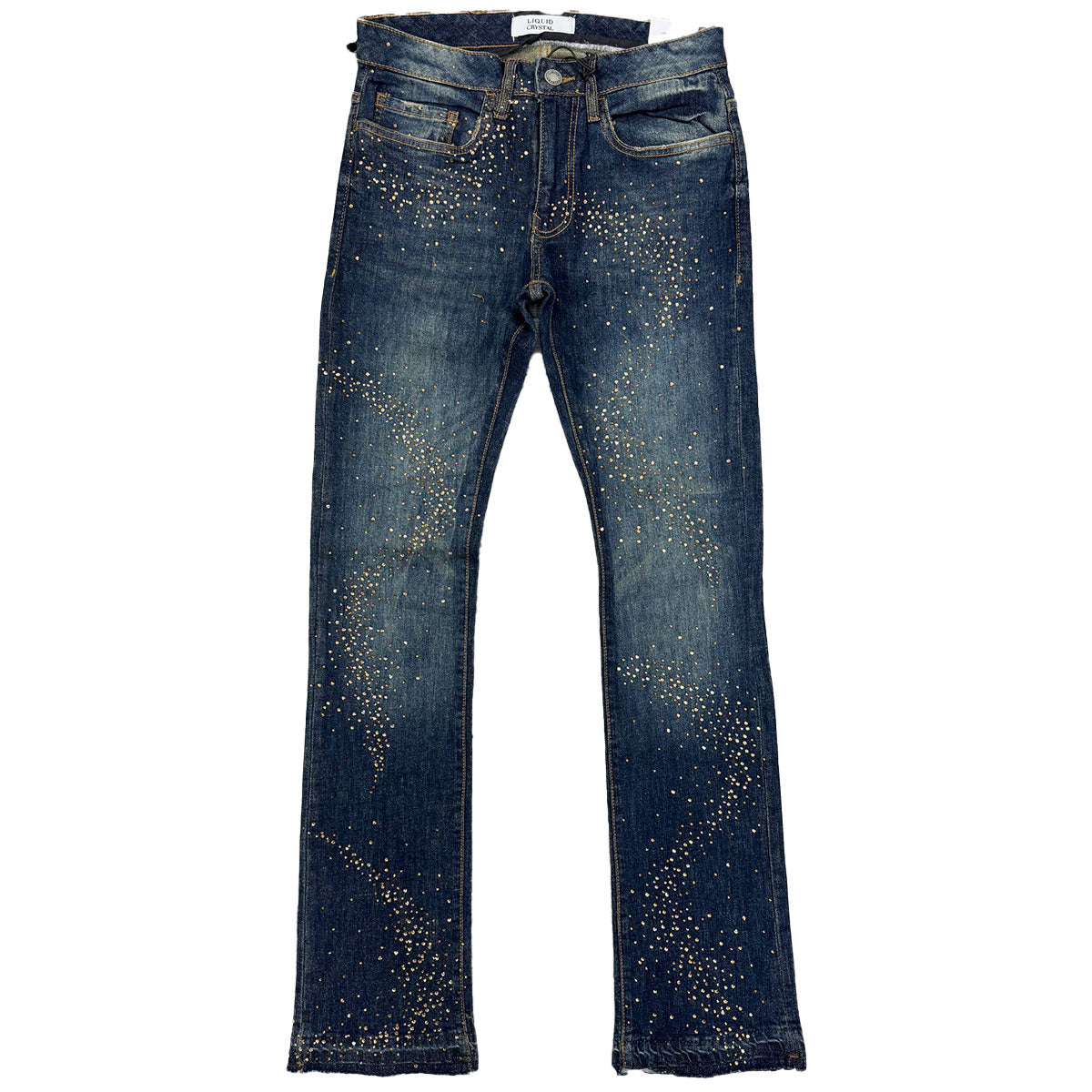 These regular rise, stacked fit vintage wash jeans from Jordan Craig feature an extended length flare pant for maximum stacks, super stretch fabric, and rip & repair designs.