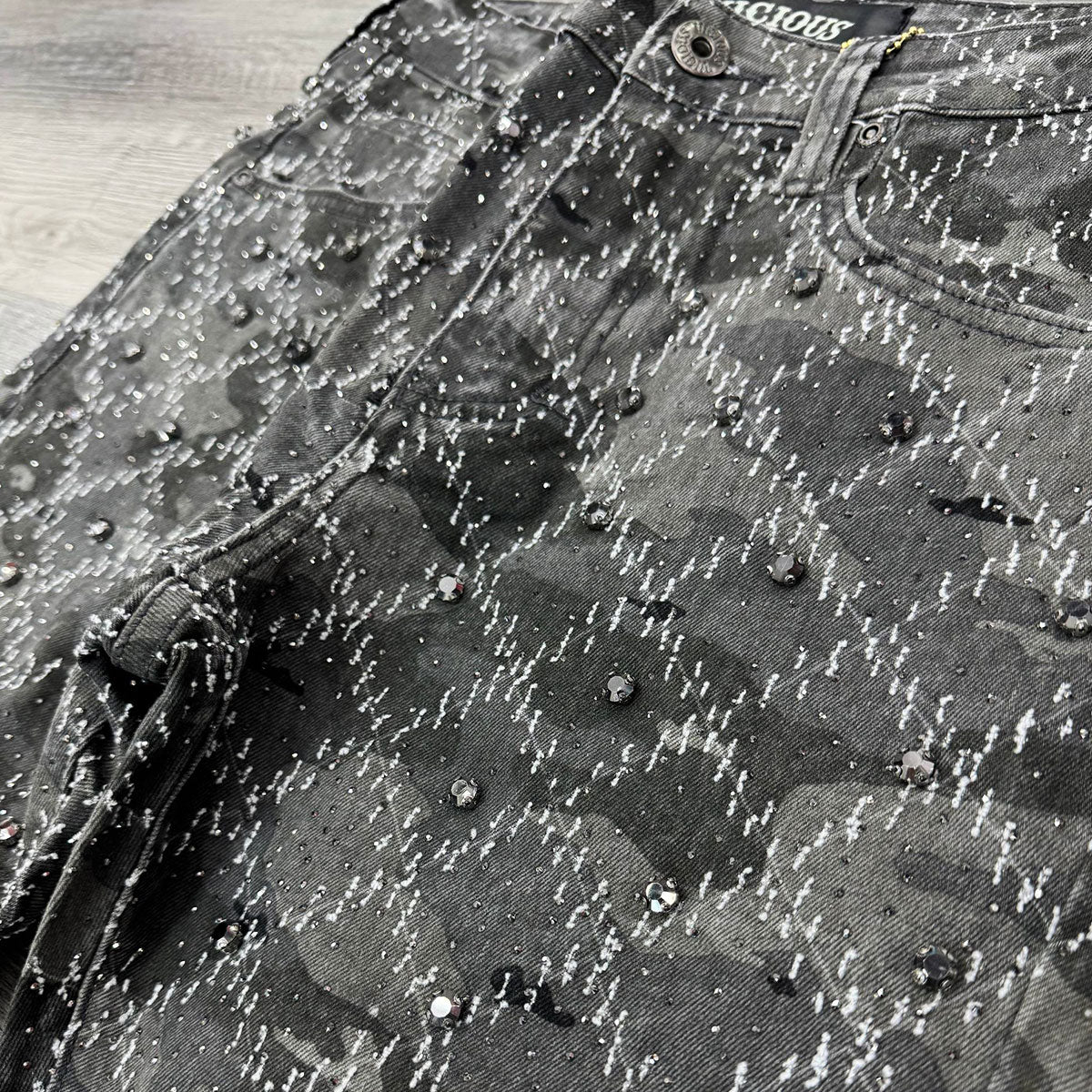 Embellished Rhinestone Flare Denim (Grey)