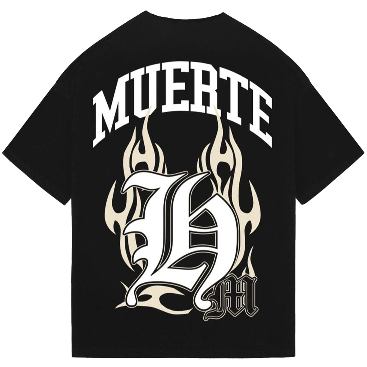 This black t-shirt from Hasta Muerte features a varsity collegiate 'Muerte' graphic on front and a matching monogram on rear.