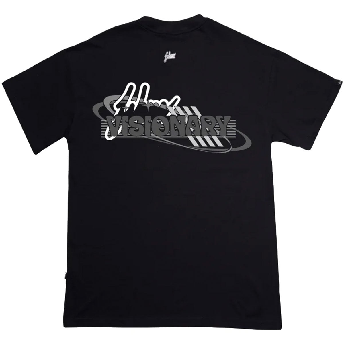 This black green t-shirt from FSHNS Brand features a black glitter visionary graphic with grey and white branding on front and a small rubber logo patch on rear with a matching graphic.