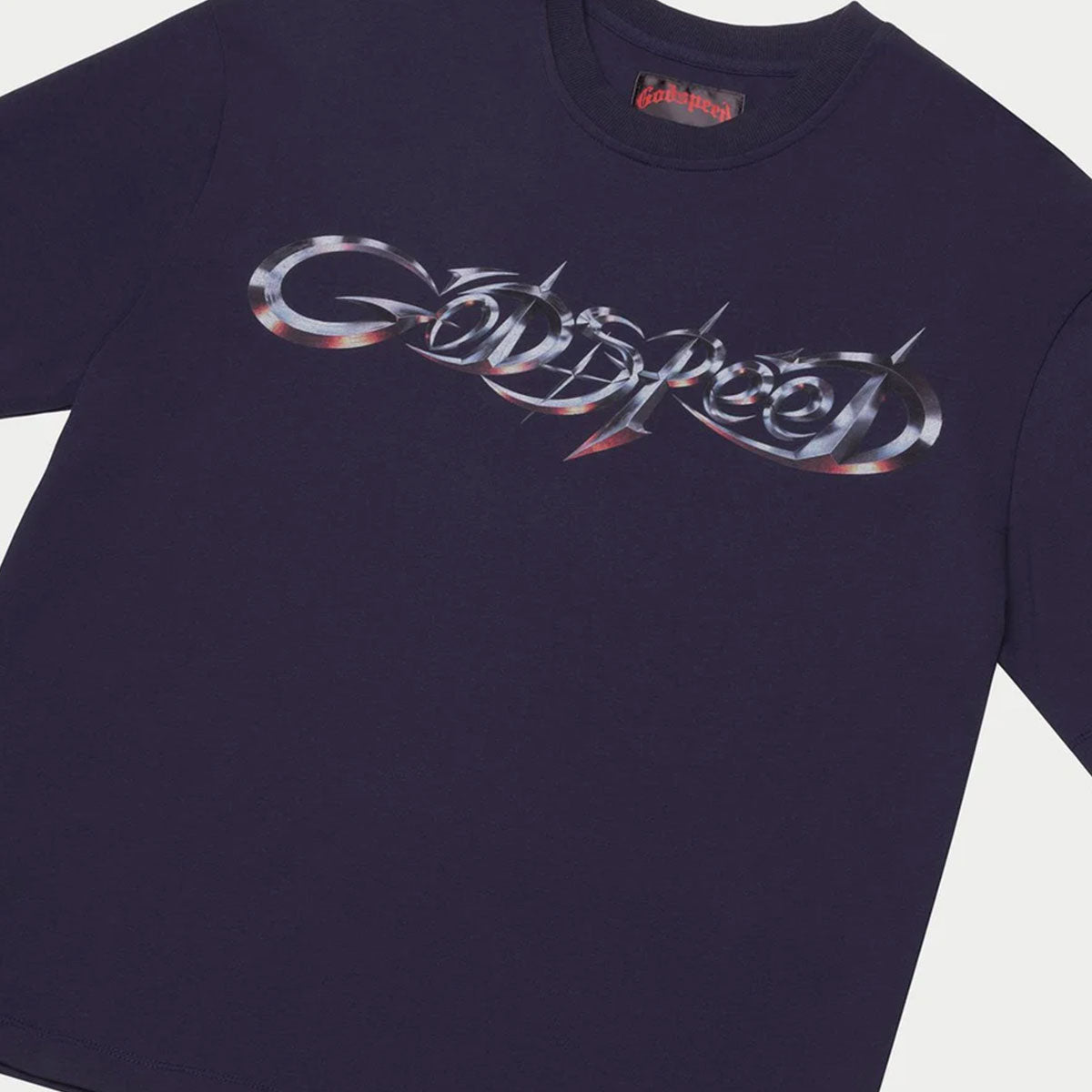 This navy t-shirt from Godspeed features a chromed multicolor branded logo on front and a matching large 'G' logo on rear.