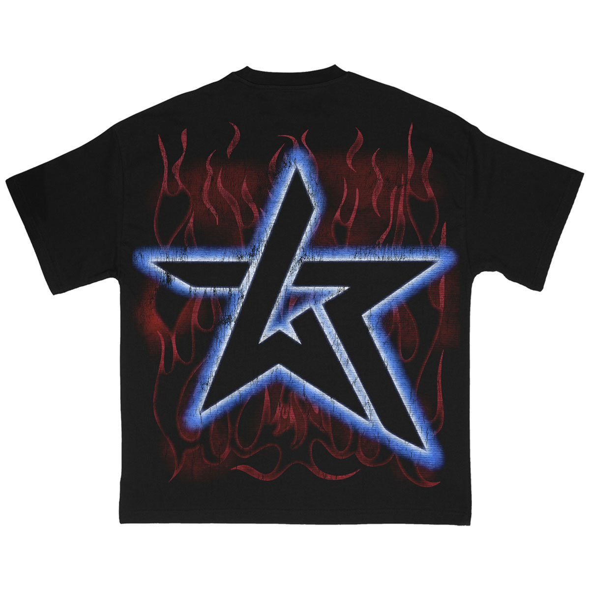 This black t-shirt from WKND RIOT features a killer clown graphic with branding on front and a matching star graphic on rear.