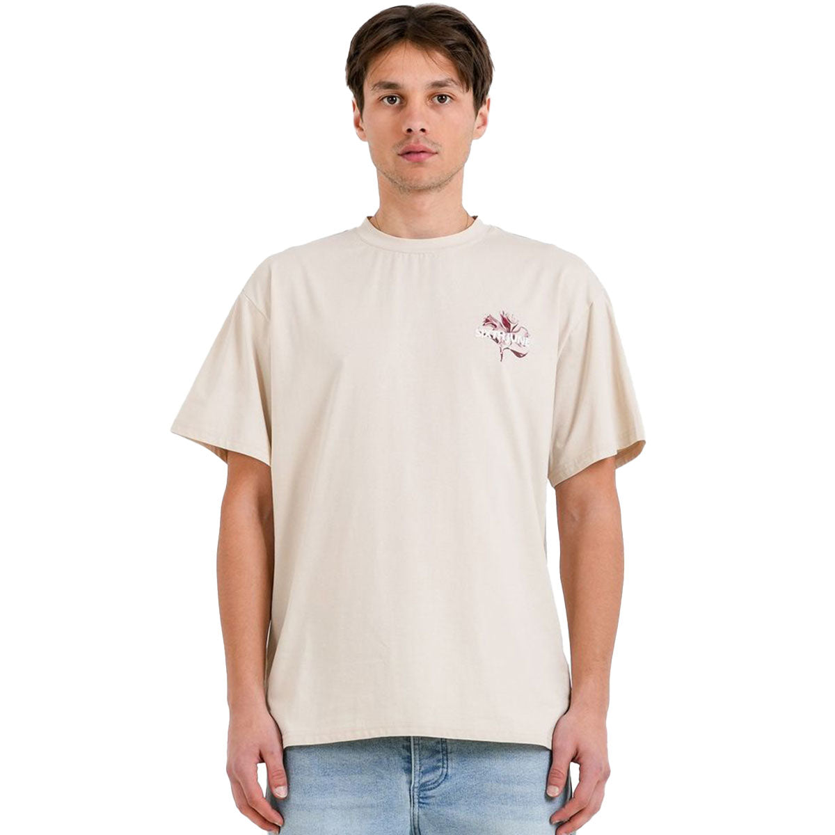 This beige t-shirt from Sixth June features a small metallic flower print graphic on front and a large matching flower graphic with branding and embossed text on rear.