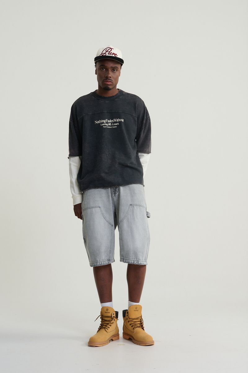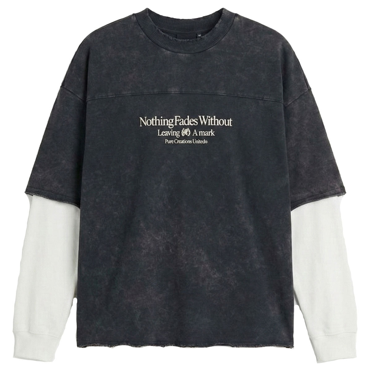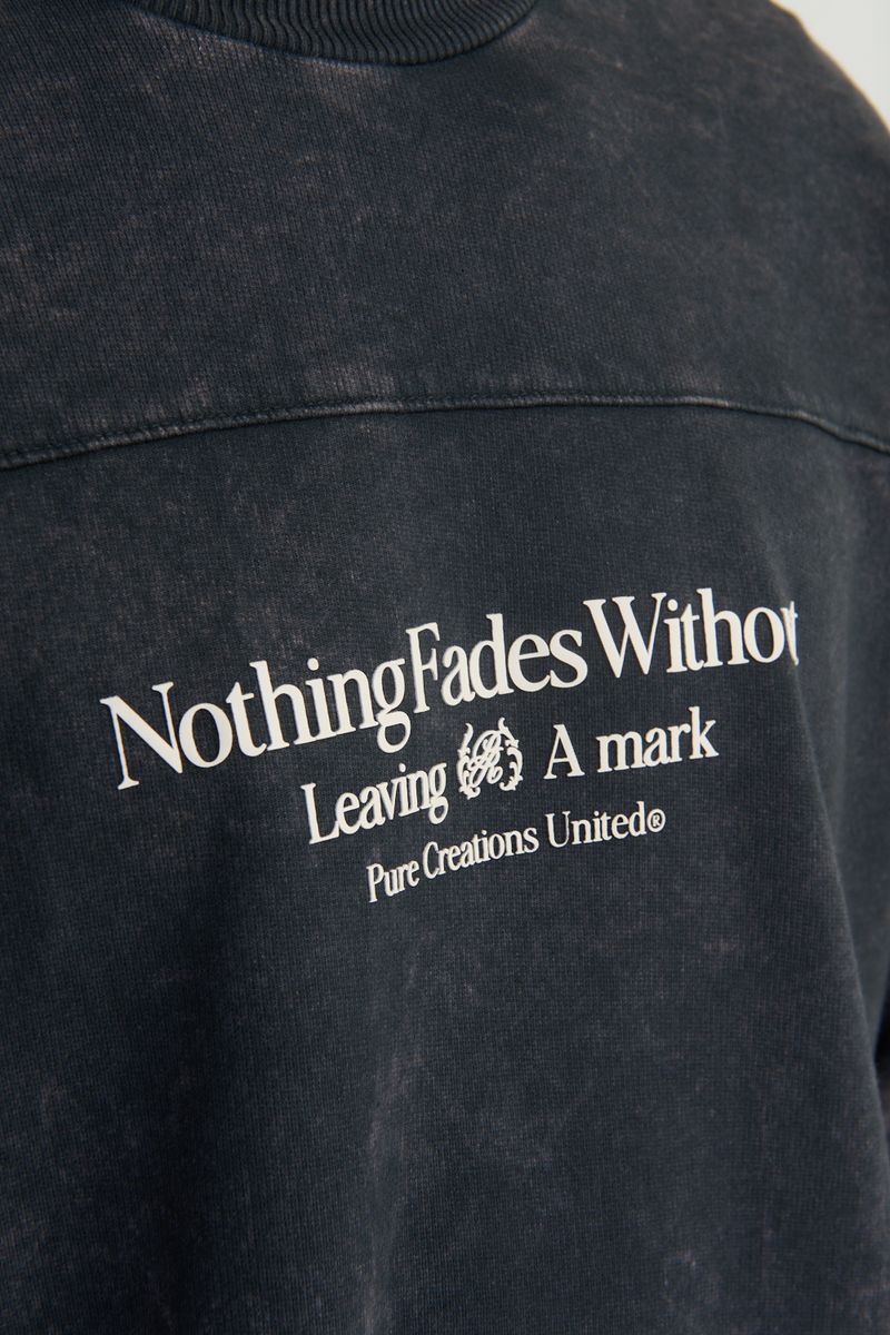 This washed black long sleeve t-shirt from Pure features a 3D slogan graphic on front and a rustic black graphic on rear.