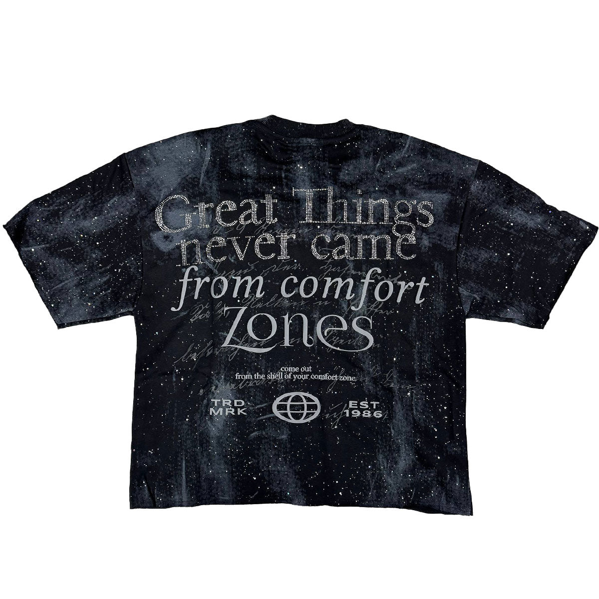This black t-shirt from BKYS features a 'Gasland' slogan car graphic in rhinestones with a rear slogan graphic in rhinestones.