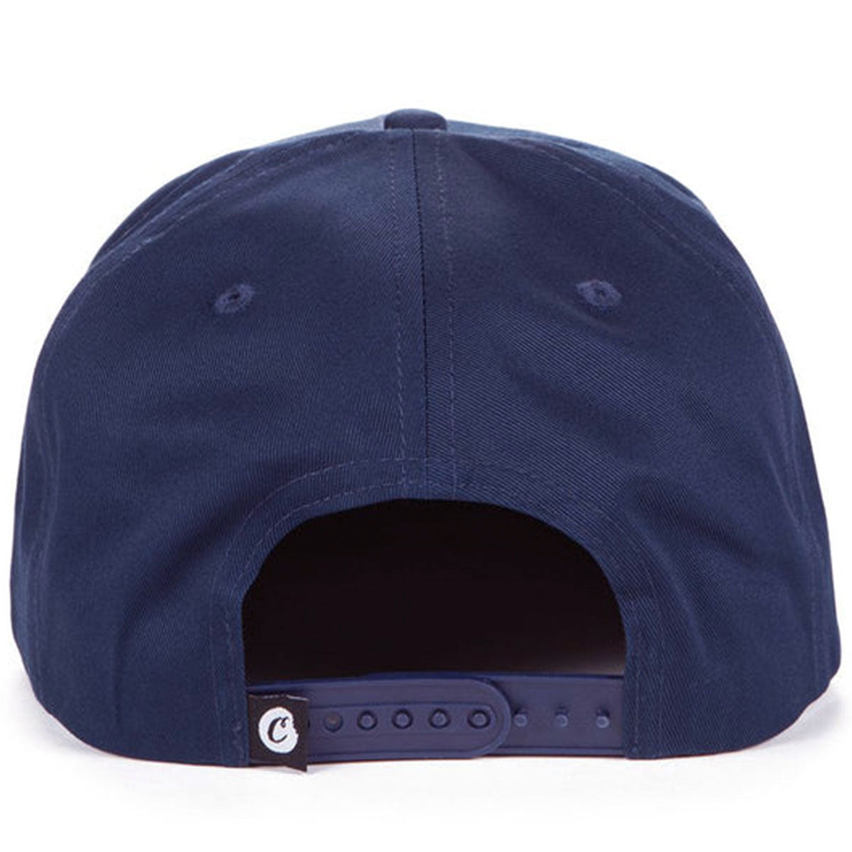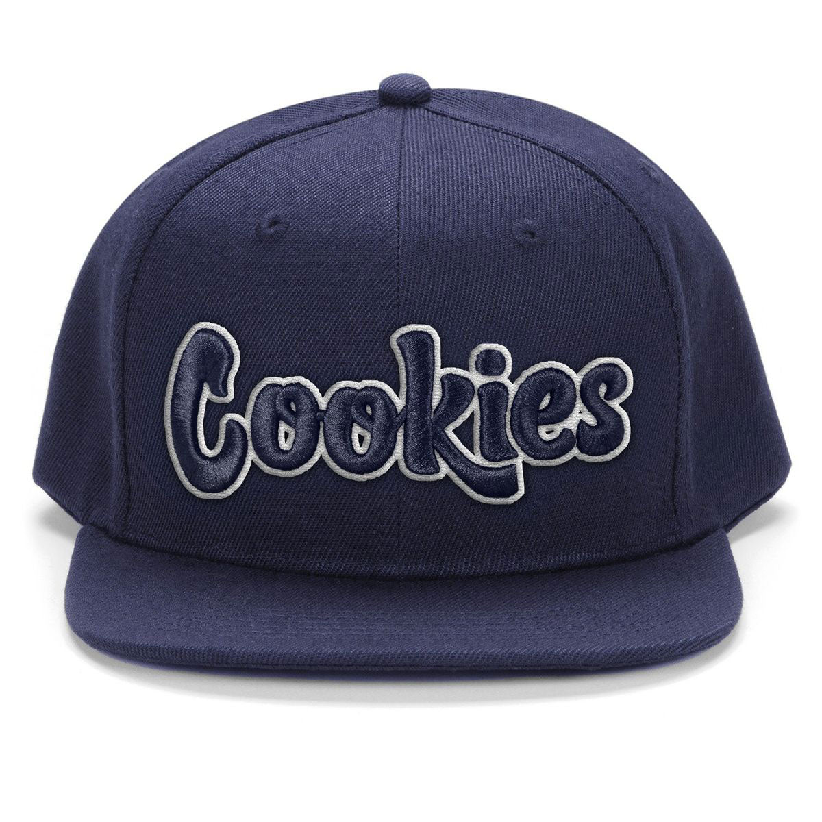 This navy hat from Cookies Clothing features the signature logo embroidery with a white outline on front.