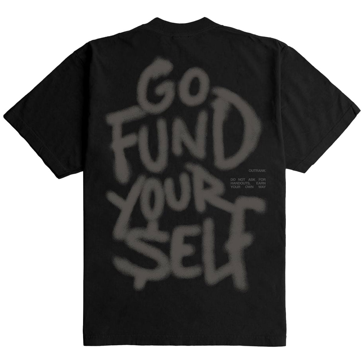 This black t-shirt from Outrank Brand features a branded slogan graphic on front and a large 'Go Fund Yourself' graphic on rear.