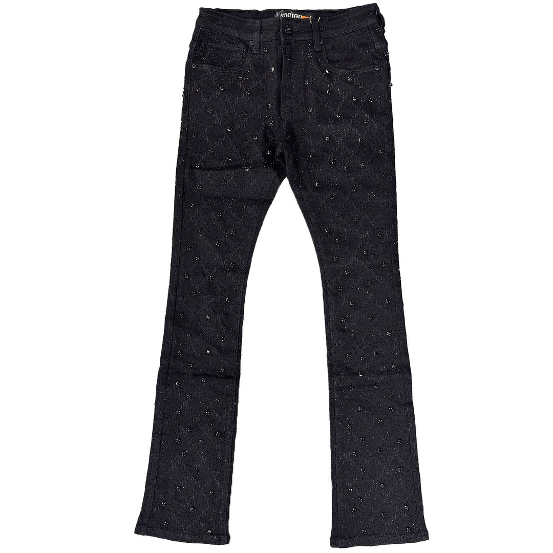 Embellished Rhinestone Flare Denim (Black)
