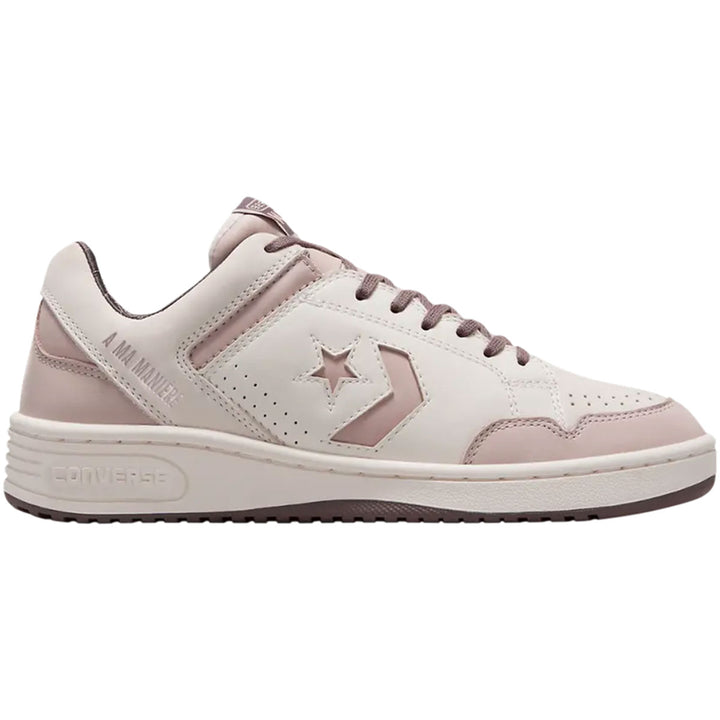 This Converse Weapon Low in collaboration with A Ma Maniére features a fossil stone leather base with violet ore overlays.